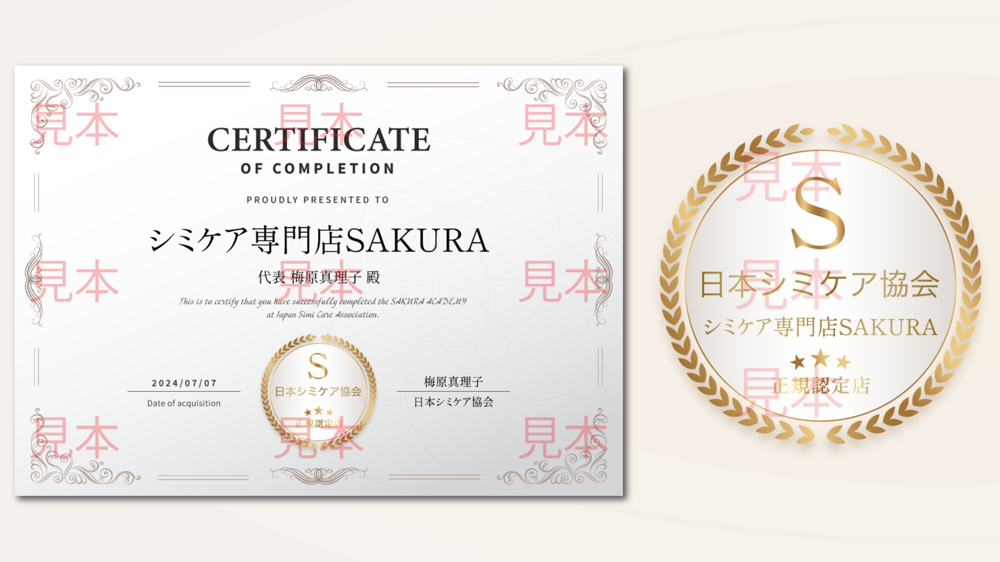 日本シミケア協会認定シミケアアドバイザー資格および公式ディプロマを授与いたします。